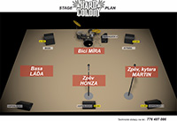 Stage plan s rozmístěním aparatury pro zvukaře.